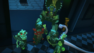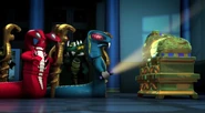 Following the ordeal with the ghost invasion, Dr. Saunders, the curator of the museum, oversaw the opening of the Hall of Villainy. The exhibit features many of the ninja's old adversaries, including life-sized mannequins of Samukai, Pythor, Kozu, Cryptor, Chen and Morro, all of whom are holding translucent green weapons that resemble their signature weapons.