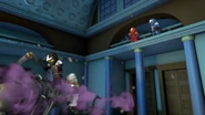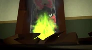 On the evening of the Day of the Departed, the ninja, Wu, and Misako arrived at the museum to purchase lanterns at the gift shop. They were then treated to a tour of the new Hall of Villainy by Dr. Saunders as well as the Yin Blade, which Cole later steals. The displays were soon brought to life by their originals' ghosts after Yang brought them from the Departed Realm. When Dareth used the helmet to have the Stone Warriors attack Kozu, they wreck the museum, shocking Dr. Saunders.