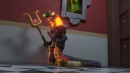 Jake and Kai then barge in. Kai turns the sprinklers on, and Jake praises him for saving them without powers. Kai then praises him back, and everyone shares a hug.