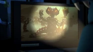Inside his lab, Krux is preparing his Vermillion troops while Acronix is amazed by all of the new technology he never got to experience.