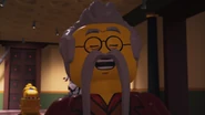 Kai goes to the museum to find Dr. Saunders to ask him about a Vermillion helmet he recovered. While trying to cover up the history of The Hands of Time, Saunders' mustache comes off after getting caught on the tail of the snake statue in the room, revealing his true identity as Krux. Kai fights Krux until Acronix arrives. Krux nearly defeats Kai but Nya arrives to help. After locking Krux in a golden sarcophagus, Acronix uses the Forward Time Blade to escape with the sarcophagus and Cyrus Borg, who had been hidden inside the sarcophagus.
