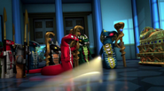 Cole, Jay, Lloyd, and Zane go to the museum to find anything that could be used to locate Krux and Acronix's base of operations. There, they discover his secret lab, as well as a secret passage to the Vermillion Swamps.