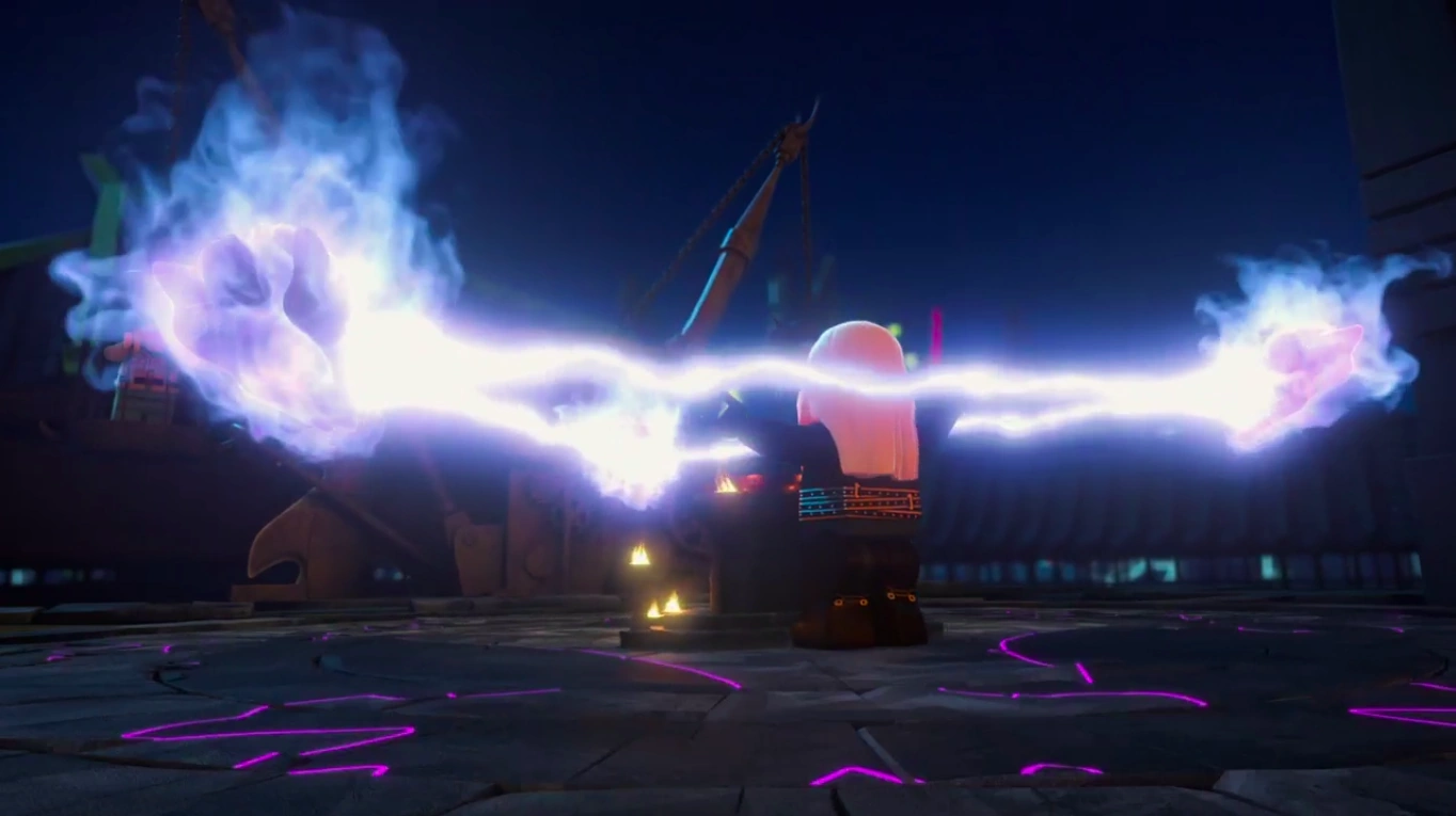 After recovering all three Oni masks, Harumi takes Lloyd prisoner and brings him to the Temple of Resurrection where she had prepared a ceremony to resurrect his father. Lloyd’s mother Misako is held in a cage that is linked to a trap alongside another cage that Lloyd was put in to prevent the other Ninja from interfering with the ritual. Later that night, the Sons of Garmadon have a brief fight with the Ninjago police before proceeding with the ritual. Harumi takes a hair from Lloyd and Misako, and stated they already took a hair from Wu, then orders the three masks to be put into position. Harumi begins to recite an ancient language that makes the Oni Masks levitate and connect to each other through beams of energy, which would eventually rip open a portal to the Departed Realm.