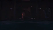 With Lloyd freed from his cage, he and his allies combined their Spinjitzu tornados to push towards ritual table where Harumi stood chanting. Evil laughter now echoed across the temple grounds as the palace's eaves collapsed inwards, glowing with sinister purple energy. Despite facing strong resistance from the winds generated by the ritual, Lloyd managed to break through and strike down Harumi, interrupting the ceremony as Garmadon's voice cried out with a fading, "No!" With the ritual interrupted, the three Oni masks returned once more to their inert states as the portal closed, seemingly keeping Garmadon's spirit within the Realm of the Departed.