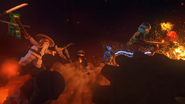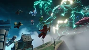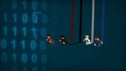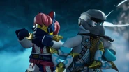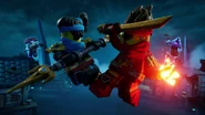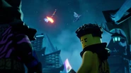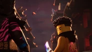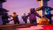 - During the first part of the sequence, only Zane is wearing his Hunted outfit. The rest of the ninja are wearing their Resistance outfits.