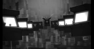 The whole intro uses a red filter. At the beginning, the Prime Empire motherboard appears, which activates and passes through a wave of energy to a nearby arcade cabinet, followed by others. All cabinets contain short clips from previous episodes. At the end, several cabinets with Unagami's symbol appears, and the one in the middle opens and shows the title card.