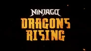 The intro starts with the ninja with Lloyd leading them, jumping along the rooftops of the City of Temples with Wyldfyre flying on Riyu as they head for Thunderfang and narrowly missing a lightning strike before the classic ninja put their hoods on and pass by the Arc Dragon of Focus while heading for Thunderfang and the Forbidden Five. On one rooftop, Zane fires Ice at Drix while Sora kicks Rox away and lands behind Zane and they pose. Kai and Nya jump high, weapons at the ready as they face Kur and Zarkt. From the ground below, Arin, holding a Prismatic Blade, and Ras watch Wyldfyre face Nokt before Arin turns to Ras. Thunderfang roars as Riyu flies towards him and Wyldfyre jumps off, fist raised before suddenly changing to Kai, then to Nya, then to Cole, then to Frak, then to Sora, then to Lloyd, and finally Zane as he charges at the screen with a punch. The Ninjago: Dragons Rising logo soon appears with the Dragons Rising part in red, then sparks appear around it, turning the title purple and then transitions as the sparks turn into one of Thunderfang's tornados.