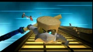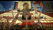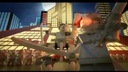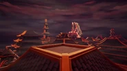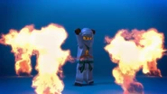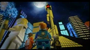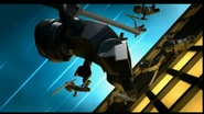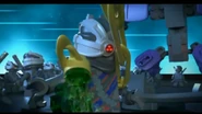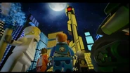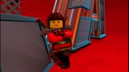 In the Previously on Ninjago shot a ticking orange transparent clock appears on a clock tower, which then moves away to show Kai and Nya before a rewind of some of the previous episode is swiftly shown. The song is "the Temporal Whip."