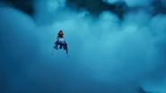 At the beginning, an orange mist appears, revealing a cloudy sky. Wu's hot air balloon, in which he sits with Misako, arrives first. Then the scene stops and their names appear in gold. In the background, Kai is visible doing Airjitzu. The scene moves to him, and when he stops his Airjitzu and kicks his feet forward, the scene stops and shows his name. The clouds gradually darken and Zane appears on an ice slide along with the ghost Cole, who then does Airjitzu. He will then stop and their names will appear. The scene continues deeper into the clouds and shows Lloyd flying on his Energy Dragon. When he creates a ball of Energy with his hands, his name will appear. Even deeper in the clouds, Jay flies on his Lightning Dragon with Nya, who flies with the water she has on her hands and drives with it like with jets. Then their names will appear. Nadakhan then appears on almost completely dark clouds with orange lightning and then he disappears. Another, brighter cloud pops up and the title card appears.
