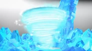 This intro starts with a black void with a floating crystal. The camera then zooms into the crystal and travels through a tunnel of other crystals before stopping at a crystal which plays a clip from previous episodes. the shot then moves to another crystal which shows another clip. Another crystal is shown with another clip played. After the last crystal with a clip is shown, the shot zooms out to show a crystal rising out of the ground. The crystal then starts overloading with energy and explodes, revealing the "Ninjago" title. A lightning flash then reveals the title card. Alternate Gothic is used again.