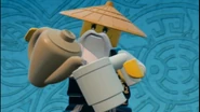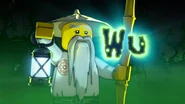 - For some reason, Wu's beard resembled its minifigure appearance in the first version of this intro, with the ends curving more upward. It went back to its normal form in the second version.