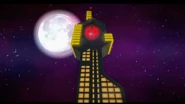 The title card consists of a black and red silhouette of Ninjago City with Borg Tower in the middle and a light blue background.