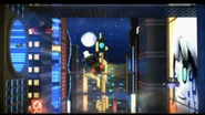 At the beginning, a shot of a scroll with a glowing Rift of Return covering the moon appears. It then turns into real sun in the Sea of Sand, which the ninja gradually pass through on the divided Ultra Sonic Raider. They talk while their names are gradually shown in green in each case. Wu also appears on the screen in Ultra Stealth Raider with his name. A short scene follows, after which the ninja combine their vehicles into one to get to the museum behind Wu in time. When they do, a title card appears behind their vehicle. Instrumental versions of "We Are Ninjago" and "the Rift Whip" are played throughout the scene.