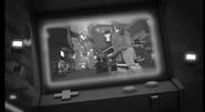 - The shot of the cast at the end of the second version has since appeared in-universe: