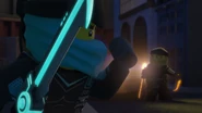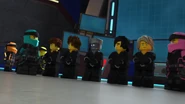The Orange Ninja came through the secret entrance of the Monastery of Spinjitzu with her team to arrest the Ninja. When the Teal Ninja couldn't put back his broken sword together during his monologue, she handed him one of her own. After Nya's return, she was talking with some of her fellow teammates before leaving to escort the Ninja to Kryptarium Prison.
