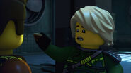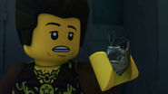 Dareth walked into Chen's noodle house, demanding they put the Puffy Potsticker back on the menu. They refuse, and Dareth goes outside to follow the trucks. His pursuit accidentally leads to him hopping into Nya's disguised DBX and accompanying her to Chen's Island.