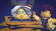 She tried to steal artwork from the museum, but was stopped by Jay and Zane. She was able to reflect their attacks, as she studied their tactics. However, they were able to defeat her by singing The Clutch Powers Song.