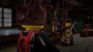 After discovering that his fake trophies had been stolen, Dareth rushed to Ronin's new pawn shop to purchase new ones. After checking the backroom to fulfill Dareth's order, Ronin was surprised to discover two Vermillion warriors stealing assorted metal items from his store. Annoyed, Ronin informed the snake warriors that his store had a strict 'no shoplifting policy' and activated one of his security measures to knock them to the ground. Moments later, Ronin would depart the store with his Salvage M.E.C., exiting through the roof and grabbing Dareth as they headed to the Temple of Airjitzu to alert the Ninja about the Vermillion warriors.