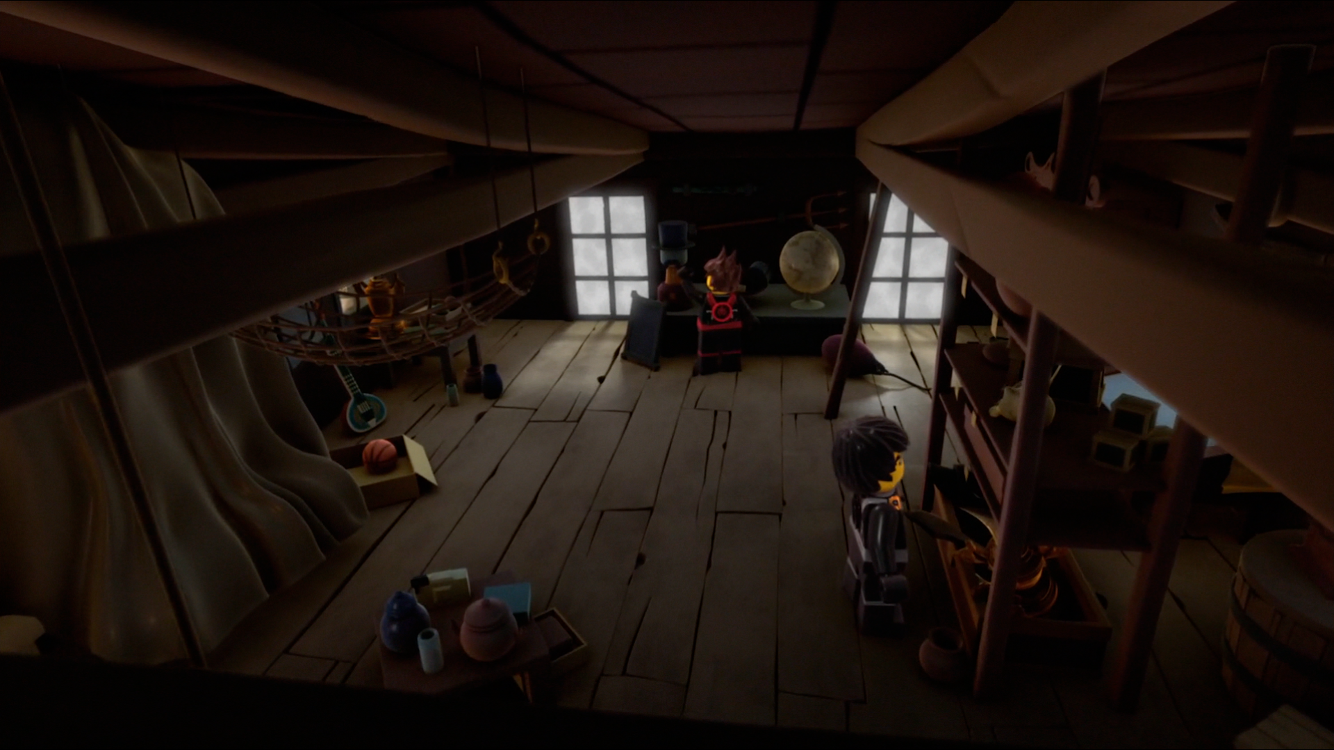 - The globe visible in the shop represents the Earth instead of Ninjago's planet.
