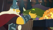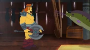 Ross engaged in a battle with Korgran. Ross eventually lost the fight, with Korgran tying him up using the former's tongue. Korgran later brought a defeated Ross to his father as proof that he is a valuable member of the barbarian horde.