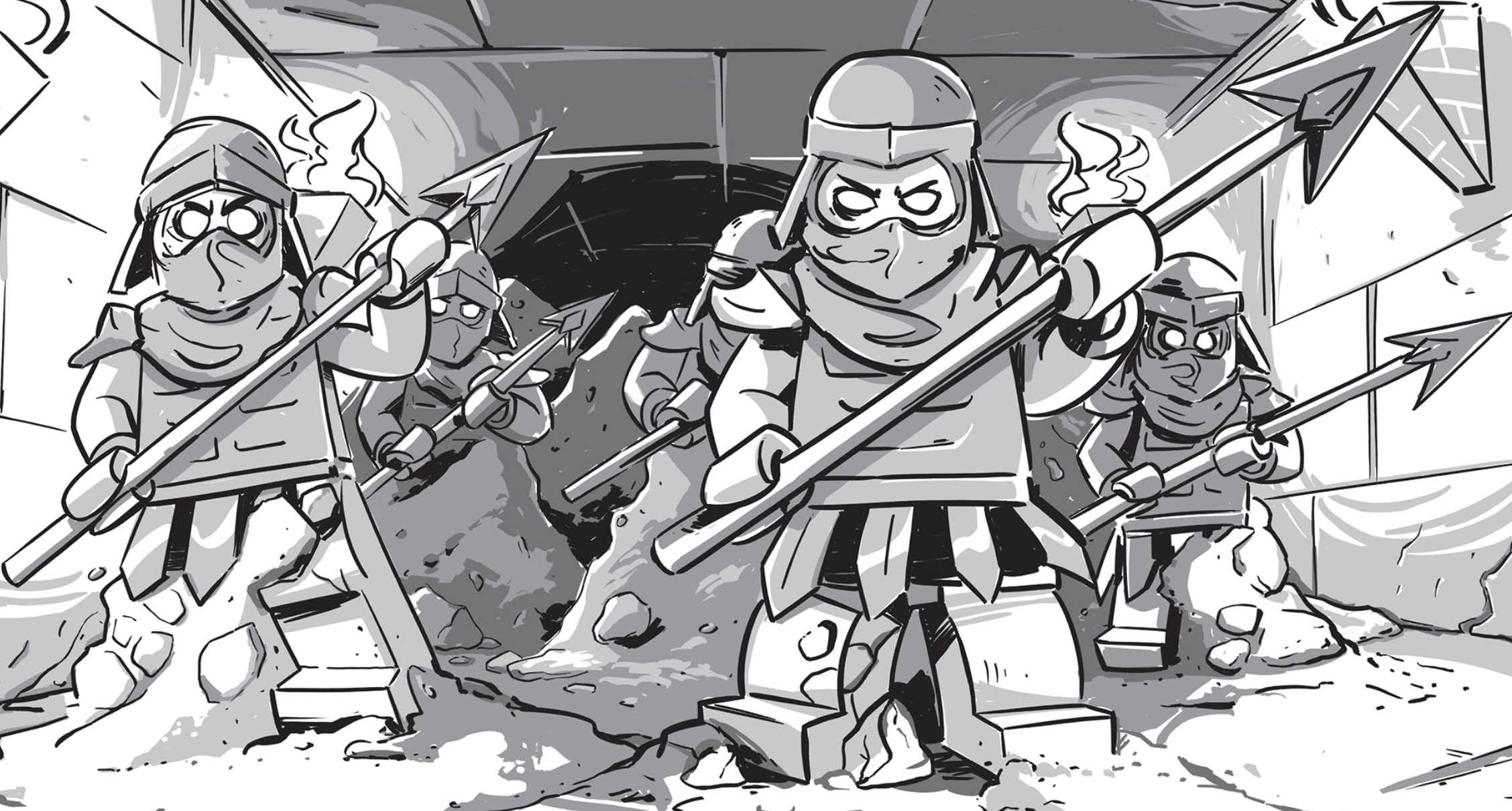 Wu and Garmadon encountered the Sand warriors as their second challenge upon entering the maze within the Pyramid of the Sphinx. Although Garmadon initially dismissed the warriors as barely a threat, he soon discovered, painfully, that their bodies were as hard as stone. However, by working together alongside his brother, the two were able to discover the Sand warriors' weakness and made short work of them, continuing afterwards through the maze.
