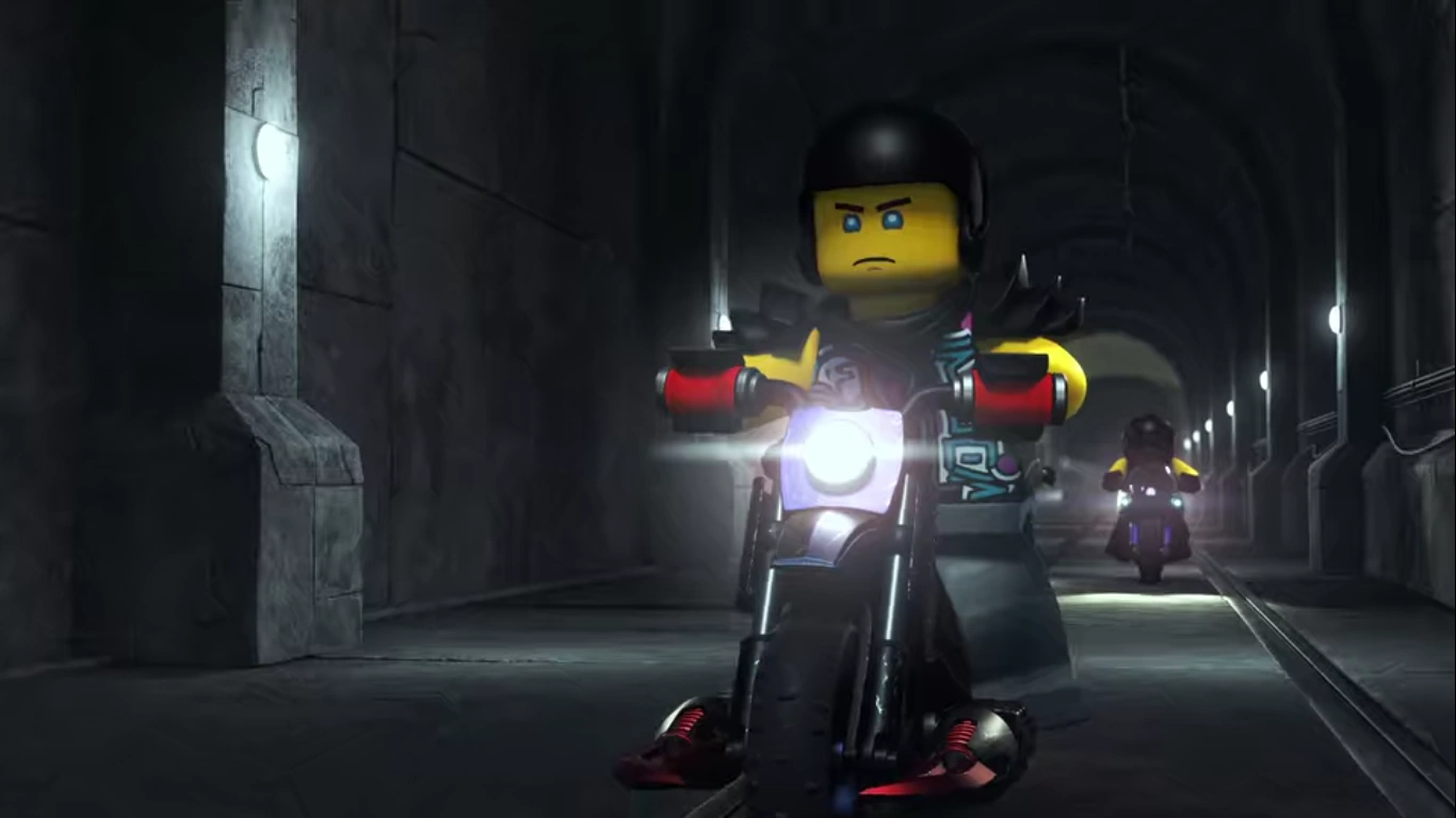 In the present, Zane is on a train in Ninjago City Subway, with Mr. E and Ultra Violet as well as many members of the Sons of Garmadon, still under the alias "Snake Jaguar." It soon comes across another train, concerning him and amusing the members and Ultra before the train quickly makes a right turn and stops. They soon got out with Ultra remarking to Snake Jaguar that it is time to meet "the big man." Out on the streets, Lloyd, atop of a tram asks Jay where Zane is. The Blue Ninja replied that he was last seen in Central Station, but they lost the signal and are unable to find Cole's signal either. The Green Ninja soon theorizes that they could've been taken to their base. Once the tram reached near Zane's last known location, Lloyd jumps off, passing by a boy and his father, the latter telling his son, but the boy thinks he is trying to be funny.