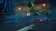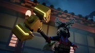After Thunderfang was released, Ras briefly lost his hammer and reclaimed it to help him walk when he saw Arin about to preform Object Spinjitzu.