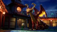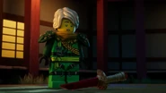 Upon returning from the Tournament of the Sources and rescuing Kai and Bonzle, Lloyd meditates in front of his portraits of Master Wu and Arin, seeking guidance on their whereabouts. However, his contemplation was abruptly interrupted by the Source Dragon of Motion, who commends him for uncovering the culprit behind the death of the three Arc Dragons, a victory that fails to bring Lloyd the relief he seeks. Lloyd expresses his concern about the Forbidden Five still being at large. Despite his doubts, the Source Dragon of Motion assures him that their nefarious plans have been halted for some time, and that he has successfully obstructed Ras from reaching the Source Dragons. She implored Lloyd not to question his decisions or his worth. As a token of appreciation for his deeds, the Source Dragon of Motion presents Lloyd with her Dragon Icon created from one of her scales. She emphasizes that he must only call upon her when the situation truly demands her intervention.[9]