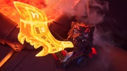 A year after the MergeQuake Storm, Ras developed a new plan to reach the Source Dragons by using Source Dragon Icons. His first move was to perform the Blood Moon Ritual, which would free the Forbidden Five from the Nether-Space. Ras aimed to have them compete in the Tournament of the Sources, hoping they would win and gain the Elemental Powers of the other participants.[5] He intended to use the powers to create enough Dragon Icons at the Cauldron of Realms to summon all the Source Dragons.[1] During his time in the Cloud Kingdom, Ras retrieved his hammer and used it to fight the ninja. During the Battle of the Blood Moon, Ras hurled his hammer at Kai, sending him into the Nether-Space and freeing Nokt. Ras tried to trap Nya in the Nether-Space with his hammer, but Arin and Sora intervened, leading to Ras being struck by a piece of the Elemental Fire Mech.[6][7]