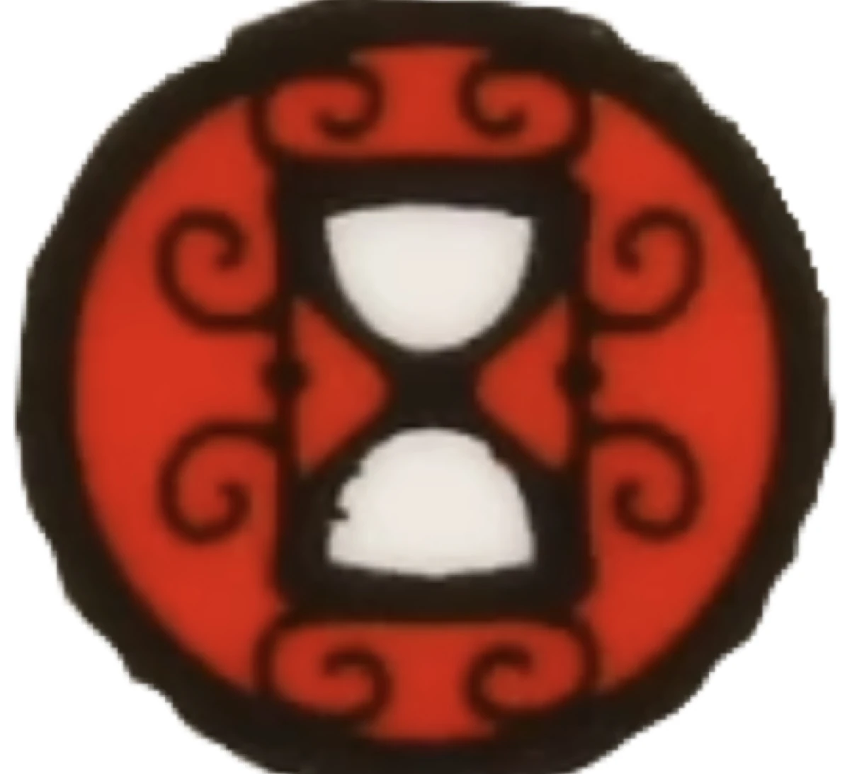 The symbol for Speed appears to be in the shape of an hourglass with curls branching off of it and a red background.
