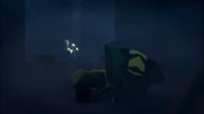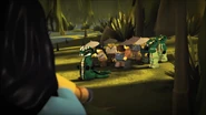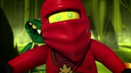 When Jay and Kai arrived at the tomb, the latter was startled by a purple bog frog behind the tomb entrance. The frog hopped off of the island and on to the top of Spitta's head, barely poking out of the acid. Moments later, Spitta leaped out of the acid and spat his venom into Kai's face, effectively incapacitating the Red Ninja while the rest of his brethren emerged. Cole and Zane arrived as the Venomari joined the Constrictai and Pythor in surrounding the ninja, with Pythor snatching the Sacred Flute from Zane's hands as he tried to play it. The ninja were forced onto a small log in an acid lake, which rapidly began to sink, and several Venomari Soldiers were seen among the Serpentine laughing at their plight. However, a mysterious samurai appeared to pull the ninja to safety, shortly before routing the snakes with a giant robot suit.