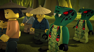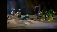The Venomari Soldiers were summoned by Garmadon the next day along with the other Serpentine to brainstorm ways to use the Mega Weapon to destroy the ninja. They soon decided to create duplicate "evil" ninja, and a Venomari Soldier was sent below deck to retrieve one of Zane's left behind gis.