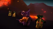 Spitta was one of the many Serpentine watching Skales try to take control of the Serpentine, mentioning that the City of Ouroboros is destroyed. When Garmadon took control instead and threatened them, he agreed to go with him inside the Black Bounty. He asked him why they’re heading the opposite direction of the ninja, which turns out Lloyd would be able to defeat him, according to the prophecy.