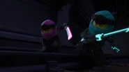 The Teal Ninja was among the other New Ninja to ambush the disguised Kai, Jay, Cole and Lloyd, when they attempt to steal Aspheera's staff. He then ends up disabling Zane's jet, resulting in him crashing into many buildings.