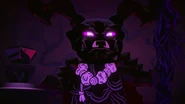 It appears to be made out of wood or similar material and shaped like Borg Tower, and it has a purple crystal at the bottom of it, which used to summon other Oni.
