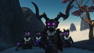The Omega was seen continuing to use his staff as he leaded his horde in attacking the Monastery of Spinjitzu. Garmadon created a similar-looking staff when fighting the Omega in his enhanced Oni form.