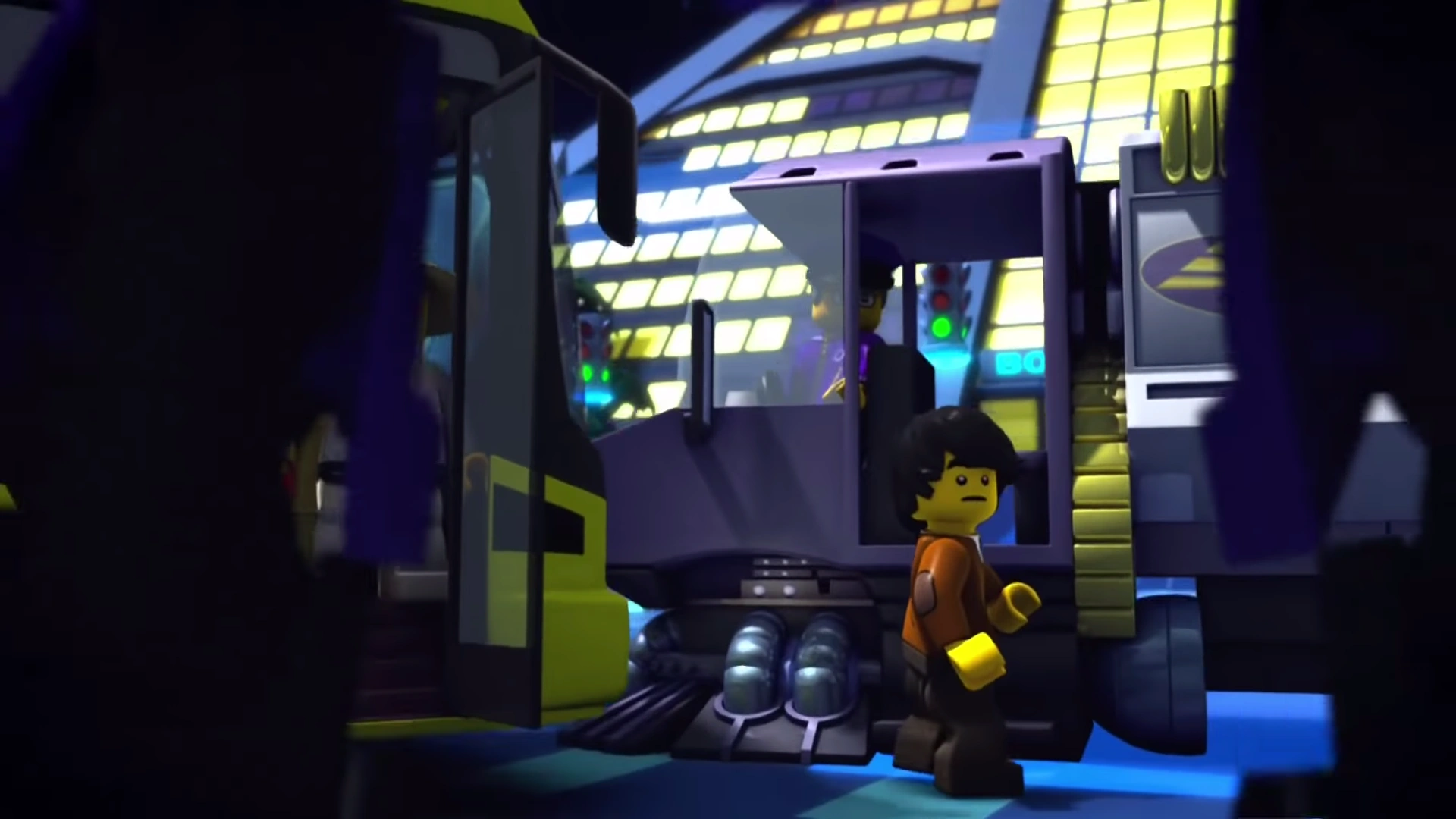 Distracted by the incredible new technology, Nya accidentally crashes the bus straight into the Postman's hover truck. Cole exits the bus to extricate it from the crash, but a Borg Industries Security Mech arrives and asks him to move aside as it deals with the problem. Master Wu decides that since they were a short distance away, the pupils and teachers should take the walk to the building on foot.