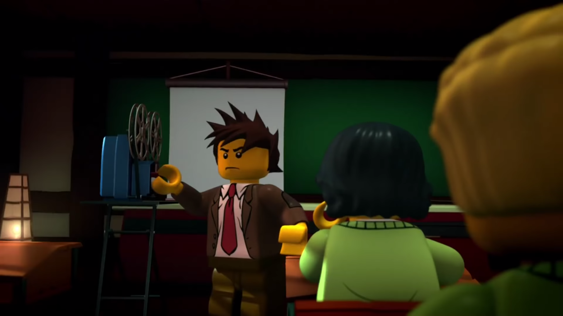 As Kai shows his students the events and the aftermath, a video of Jay filming Kai singing in the shower comes on, infuriating Kai. After Kai stops the film, Tommy comes in, saying Zane is on the fritz. In Zane's class, Brad uses a remote he got from New Ninjago City to control the Ninja of Ice, who is freed by to Cole.
