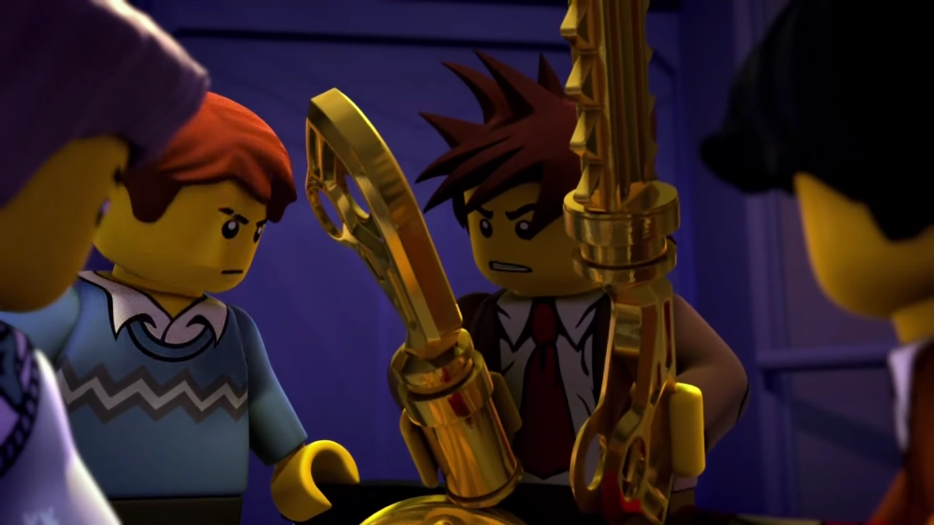 - When they are in the elevator, there is another Techno Blade at Kai's back, even though he was holding it. It disappears in the next shot.