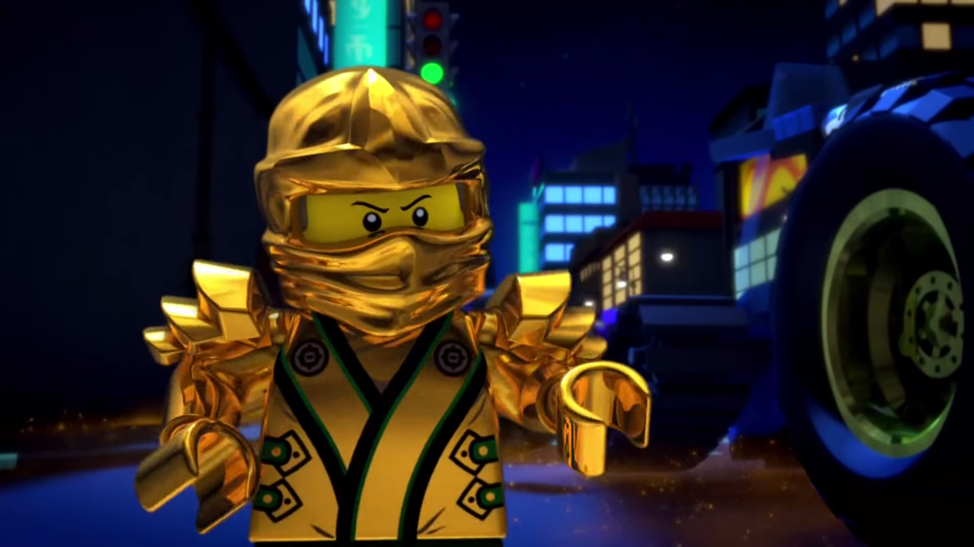 At the last moment, Lloyd arrives on the Golden Dragon, defeating the robots. At the same time, the Overlord appears on the screens around them. Lloyd tells him that he will defeat him again, after which Overlord says that he just wants his power.