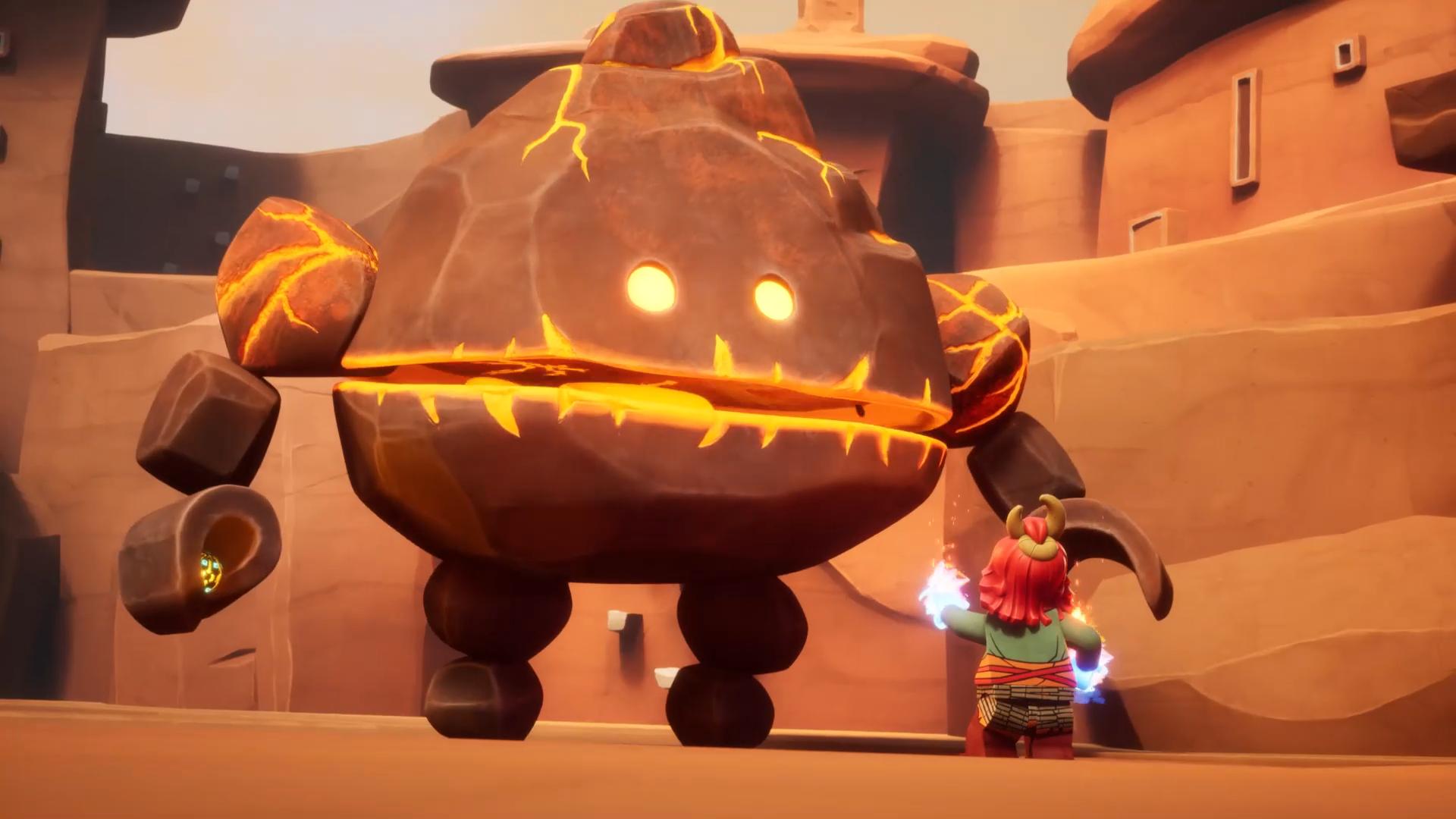 Back in the Lava-Tide village, everyone continues to dodge the boulders before Kai tries to appease to the leader about needing to save the Merged Realms, but she refuses to believe him before Wyldfyre, using the argument as a diversion, takes the core from her and refuses to hand it to Kai, only for Dorama to take it from her before the Lava-Tides grab it again and pass it to the leader, who soon eats Wyldfyre's fireballs and grows large, to the former's surprise before intending to make crushing Wyldfyre her greatest practical joke.