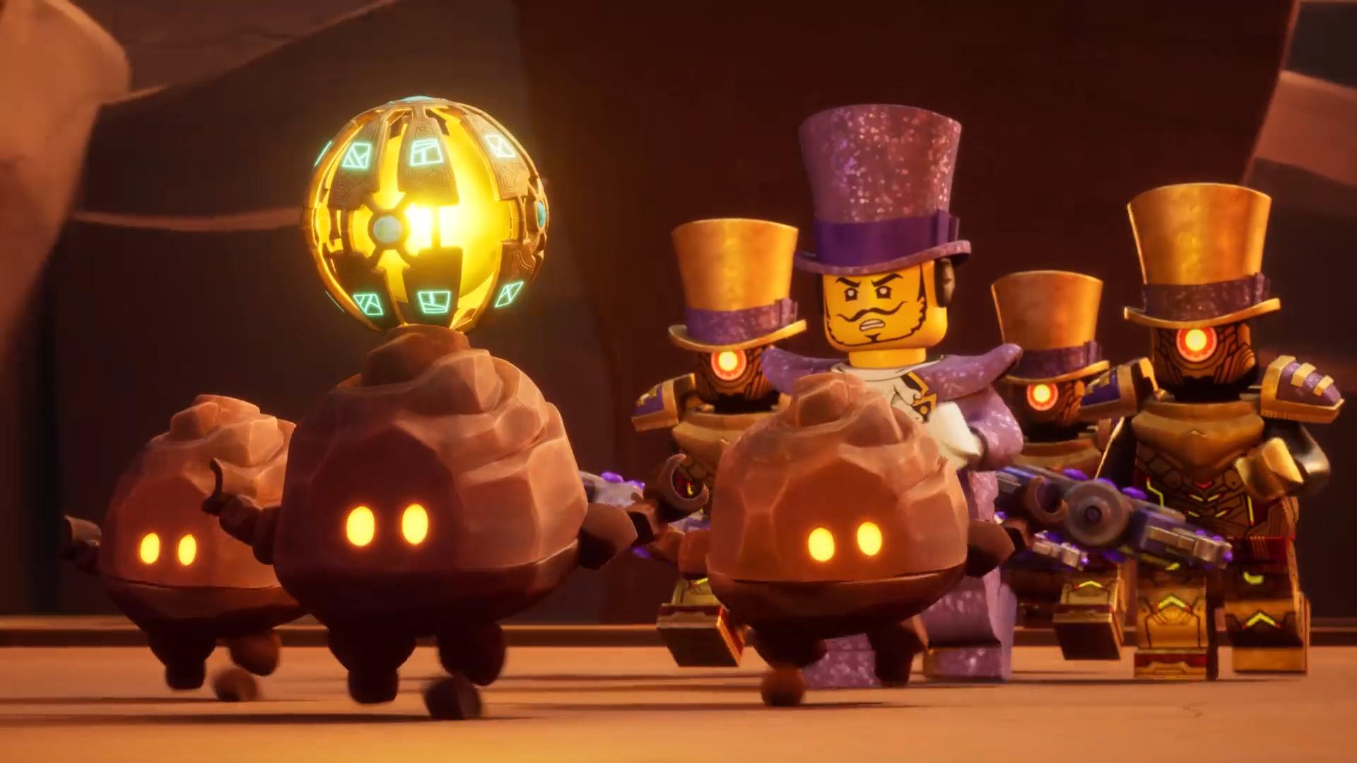 Dorama and his stagehands stand in front of Kai and Wyldfyre, having relieved them of the Purple Dragon Core and Dorama begins to monologue about his victory, only for Kai to retort that it's boring before he and Wyldfyre try to shoot at him with their powers, but he easily absorbs them with his staff and prepares to make his getaway when the Lava-Tides immediately seize it and make their own getaway. Both groups immediately pursue them before Kai managed to corner the leader, who swiftly warns Kai they will shoot flaming boulders if the latter says 'What', which he does in confusion before the leader orders a Lava-Tide by the gong to signal the go ahead to fire boulders, causing everyone, except Wyldfyre, to try and take cover.