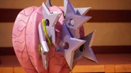 Shortly after Aspheera and the Pyro Vipers stormed the Monastery of Spinjitzu and failed to find Wu and the ninja, Char was standing in front of the dartboard which had throwing stars stuck on it.