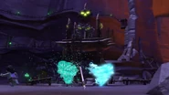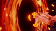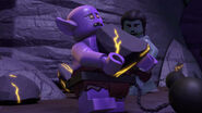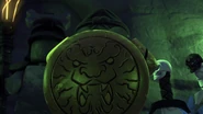After exchanging spats with the Crystal King, Lloyd freed himself from his chains and began fleeing through the halls of the Crystal Temple. Although Vangelis took off in pursuit, he was momentarily struck down by a falling Vengestone statue.
