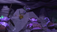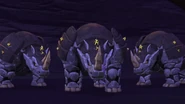 Moments later, the Crystal King entered the hall of Vengestone statues and imbued them with Darkness, bringing them to life as his Vengestone Guards. One of these guards would ambush Lloyd just outside of the temple gates and pursued him out of the temple. However, the Guard failed to anticipate the slope at the entrance and slid all the way down into the jungle of Primeval's Eye.