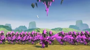 When Harumi reports of the ninja's whereabouts at the newspaper warehouse, the Overlord orders his Crystal Council to launch the entire Vengestone Guards and Dragonides to destroy it and leave the ninja for him. Later, the Crystal army stand by the warehouse, with the Vengestone Guards marching forward. When Jay makes a speech to resolve peace between them fails, the Resistance charge forward to the army.