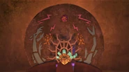 Nya and Maya came across a temple in the Tartarus Trench. They went inside and found writings on the wall. Zane translates most of the message, which said to not go any further because the sleeper in the deep must not be disturbed until the end of days. Zane tries to translate the final word while Nya and Maya open the door. They see Merlopians experimenting on the creature. All of a sudden, Kalmaar comes in and yells at Glutinous to awaken the serpent. Glutinous tells the others to try again. He powers on the cables while Zane finally translates the final word: Wojira. P.I.X.A.L. tells Nya and Maya the sleeper is Wojira and Zane tells them to get out of there.