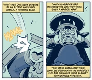 - A Wolf Mask Claw Warrior in "Rising Ninja," facing down with a dark blue hood after his mask was removed by Cinder, resembles the Wolf Mask Guard.